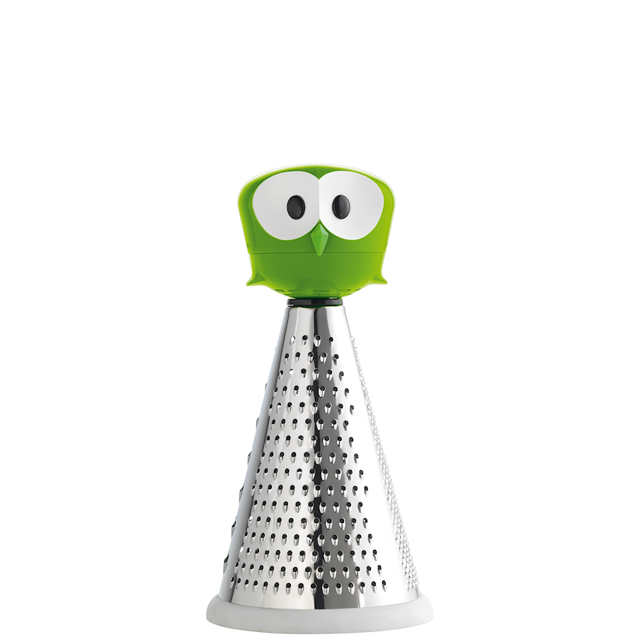 Wielofunkcyjna tarka w kształcie stożka posiada trzy wielkości oczek do tarcia, dzięki czemu sprawdzi się znakomicie podczas przygotowywania wielu potraw. Jej spód został wzmocniony antypoślizgową gumą. Zapewnia ona stabilne korzystanie z produktu. Dekoracyjny uchwyt w kształcie sowy stabilnie i wygodnie leży w dłoni i sprawia, że nie sposób przejść obok niej obojętnie!