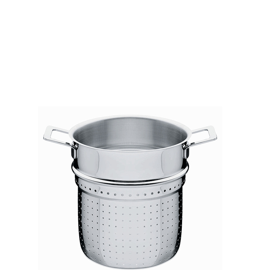 Dzięki specjalnie zaprojektowanemu kształtowi, wkład ułatwi gotowanie i odcedzanie makaronu. Dwa wyprofilowane uchwyty, umożliwiają wygodne wyjecie go z garnka, a odpowiednio wykonane dno zapewni doskonałe gotowanie makronu. Wkład pasuje go garnka z serii Pots&Pans o średnicy 20cm.