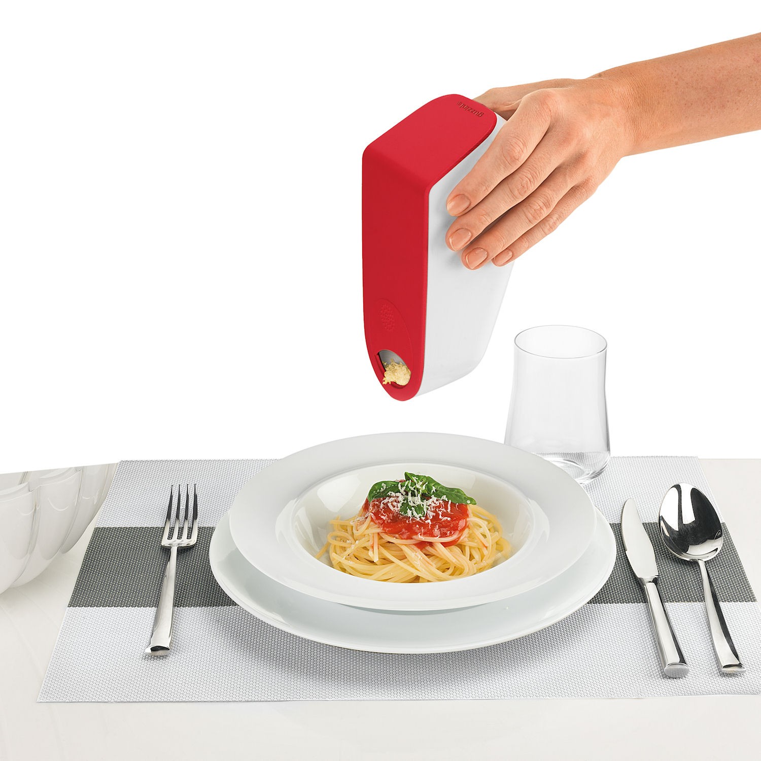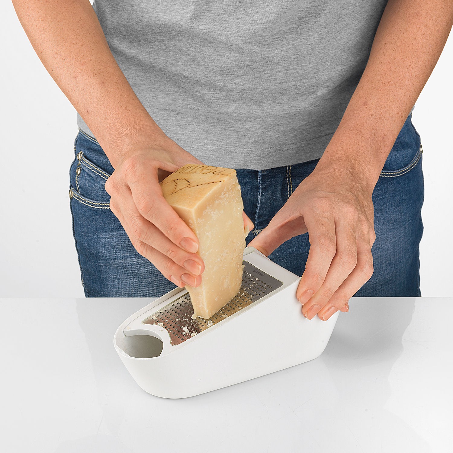 Innowacyjne rozwiązanie niewielkich rozmiarów, z którego możemy korzystać na kilka sposobów. Cały pojemnik i pokrywa została wykonana z trwałego tworzywa sztucznego, zaś tarka ze stali nierdzewnej. Drobne i ostre oczka z łatwością poradzą sobie z różnymi rodzajami sera czy też twardszymi produktami jak czosnek czy orzechy. Tarkę możemy w kilka chwil rozłożyć na części i użyć ją bezpośrednio nad daniem. Korzystając ze skompletowanego urządzenia, starte kawałki gromadzą się w środku zbiornika, a otwór zamontowany w pokrywce pozwoli na dozowanie zawartości. Nadmiar produktu możemy przechowywać w hermetycznym pojemniku, umieszczając go w lodówce.