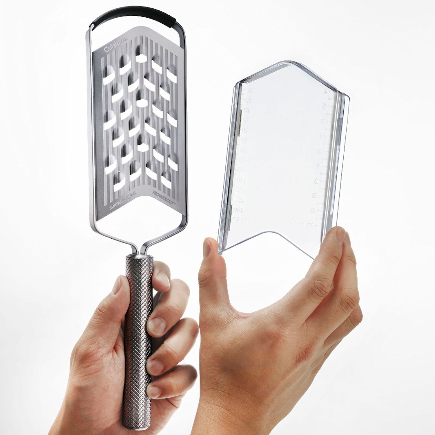 Większe kawałki sprawdzą się do sałatek, pizzy czy zup. Proces ścierania przebiega szybko i gładko. Dodatkowym atutem produktu jest również ergonomiczny