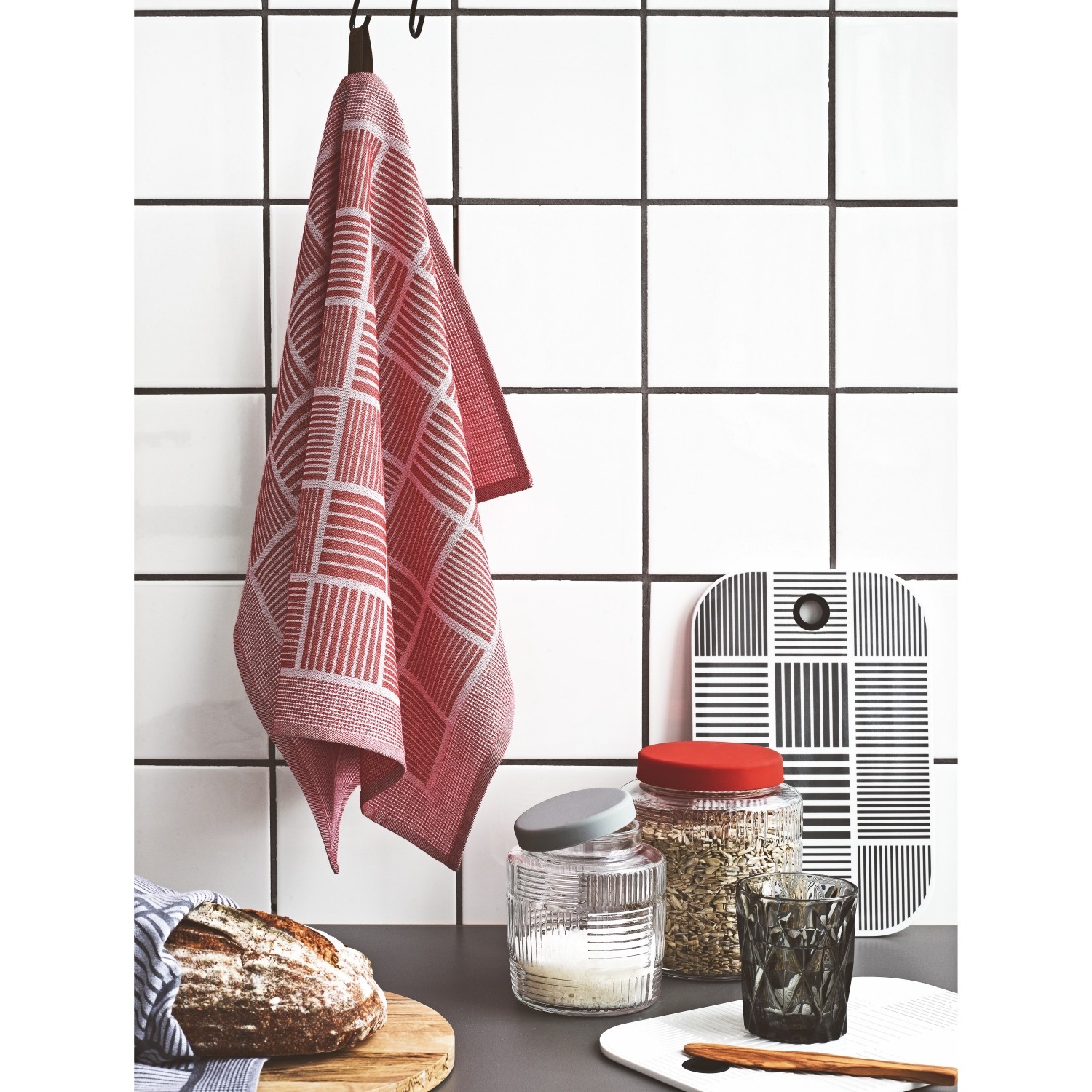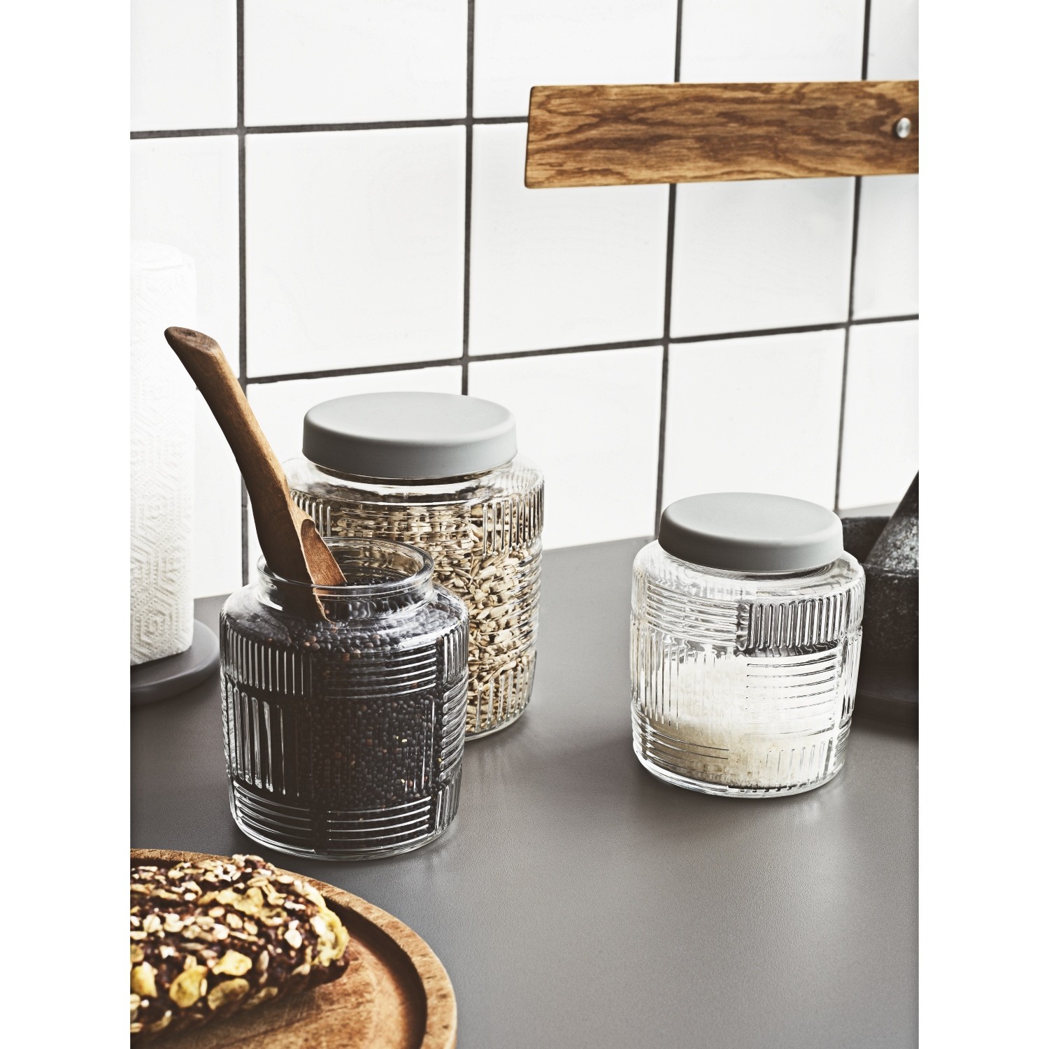 Projekty Nanna Ditzel to zawsze zaskakująca forma, którą możemy interpretować zawsze na nowo i odczytywać ją inaczej. Umieszczane na produktach różnorodne, geometryczny grafiki to cecha charakterystyczna serii Nanna Ditzel. Pojemnik kuchenny został wykonany w wysokiej jakości szkła. Transparentny charakter tego materiału pozwala efektownie wyeksponować zawartość jak również ułatwia jej rozpoznanie. Na zewnętrznej stronie pojemnika znajdują się typowe dla tej serii wzory. Pokrywka wykonana z silikonu szczelnie zamyka pojemnik, dzięki czemu na dłużej utrzymuje świeżość umieszczonych produktów. Pojemnik doskonale sprawdzi się do przechowywania produktów spożywczych, pomoże to zachować porządek w kuchni, ale również to segregowania rożnego rodzaju drobiazgów np. biurowych itd.
