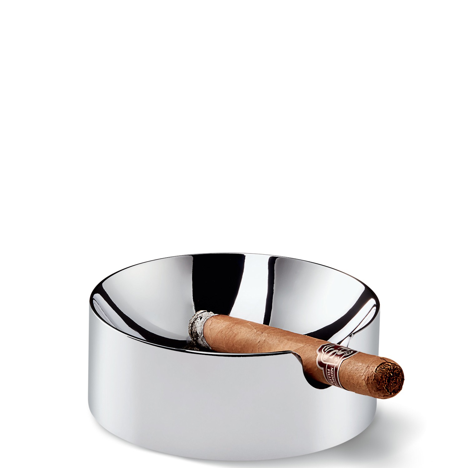 Popielniczka przeznaczona przede wszystkim dla osób palących cygara - posiada specjalne, szerokie wgłębienie, dzięki któremu wygodnie można ułożyć na niej cygaro. Niemniej jednak równie dobrze mogą z niej korzystać osoby preferujące papierosy. Dzięki wykonaniu z wysokiej jakości polerowanego chromu, popielniczka prezentuje się bardzo elegancko i sama w sobie stanowi ciekawy element dekoracyjny.