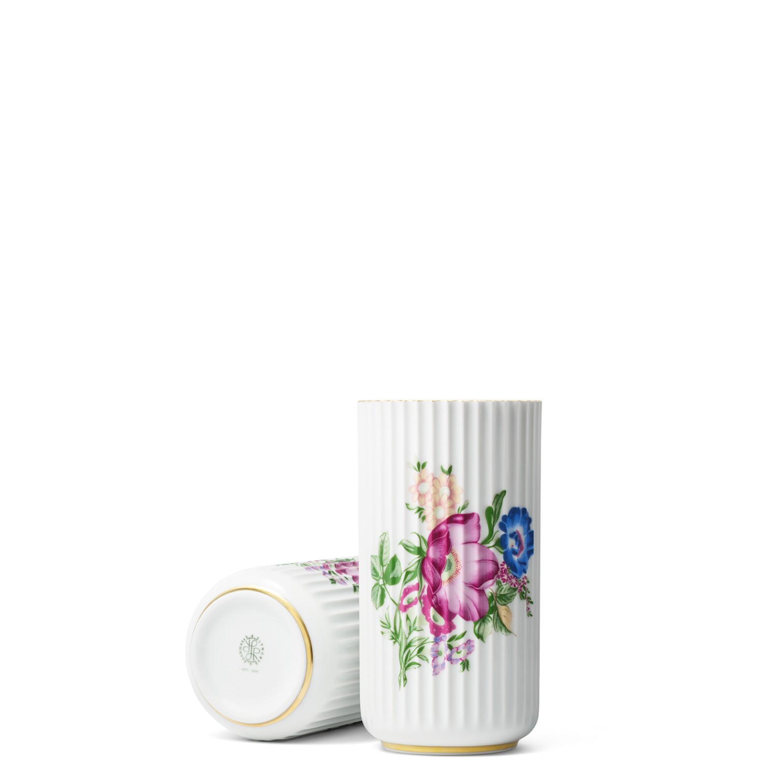 Wazon z malowanymi kwiatami marki Lyngby.