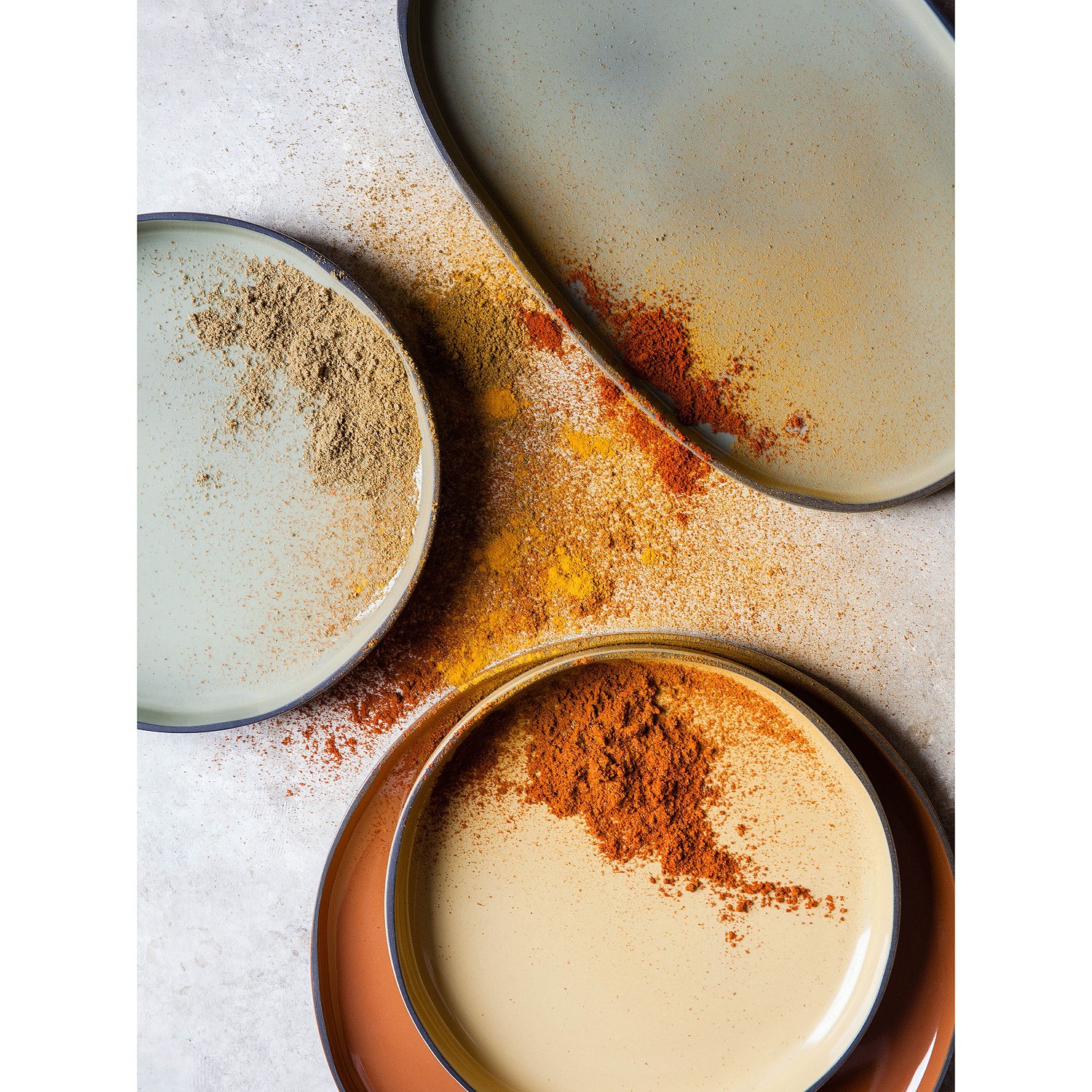 Porcelana Caractere została stworzona ze specjalnie wyselekcjonowanej czarnej gliny, szkliwionej w jednej z siedmiu barw, ręcznie wykończonej tak aby uzyskać unikalnie kształtowany dla każdego egzemplarza - czarny rant. Elementy porcelany dostępne są w siedmiu kolorach inspirowanych przyprawami. Mogą być dowolnie zestawiane utrzymując spójną tonację. Ponadto nadają się do sztaplowania, zaś płaskie dna gwarantują utrzymanie temperatury potraw.