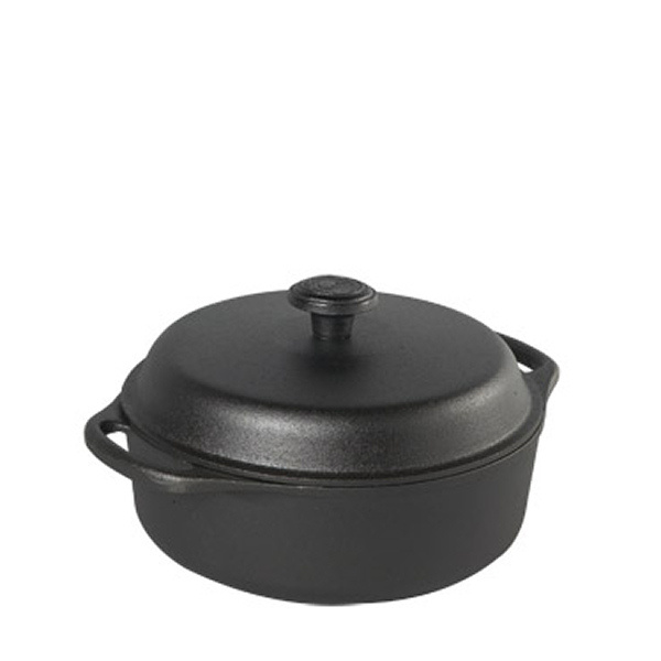 Produkt posiada naturalną powłokę żeliwną, nieprzywierającą i odporną na zadrapania. Idealnie nadaje się do duszenia, smażenia. Konserwacja jest bardzo prosta, ogranicza się tylko do mycia naczynia pod bieżącą wodą. Producent nie zaleca mycia w zmywarce. Dno jest wklęsłe a podczas nagrzania staje się idealnie gładkie toteż bez problemu nadaje się na płyty grzewcze – szklane, ceramiczne oraz kuchenki gazowe. Dodatkowo garnek został wyposażony w żeliwną pokrywę.