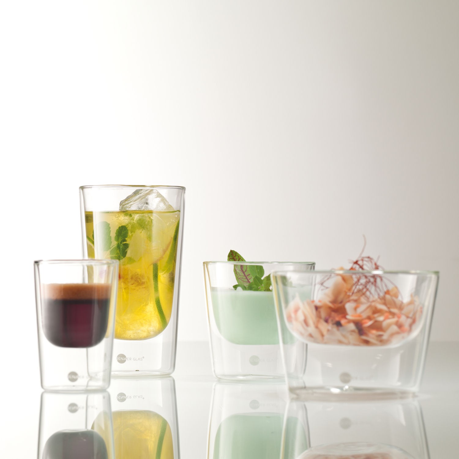 Komplet 2 szklanek wykonanych z kryształu bezołowiowego o podwójnych ściankach.