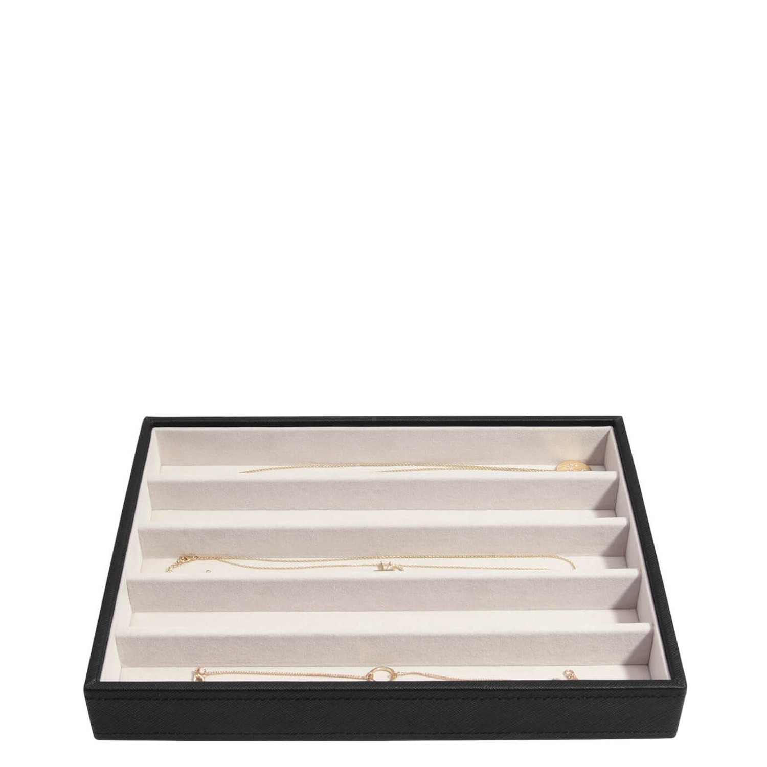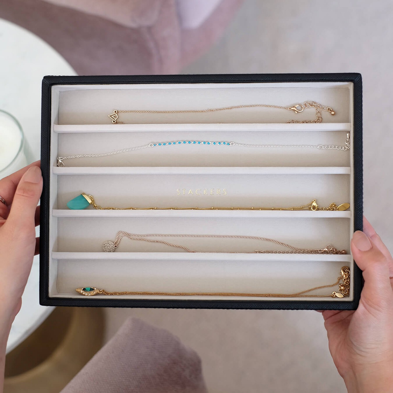 Pudełko z serii Classic zostało podzielone na 5 jednakowych przegródek tworząc idealne miejsce do przechowywania łańcuszków oraz bransoletek! Stackers to angielska firma, która produkuje wyjątkowe organizery na biżuterię. Pudełka wyróżniają się pięknym wyglądem, funkcjonalnością a także doskonałą jakością. Produkty marki Stackers zostały wykonane z dbałością o każdy detal, zdobyły serca kobiet na całym świecie!
