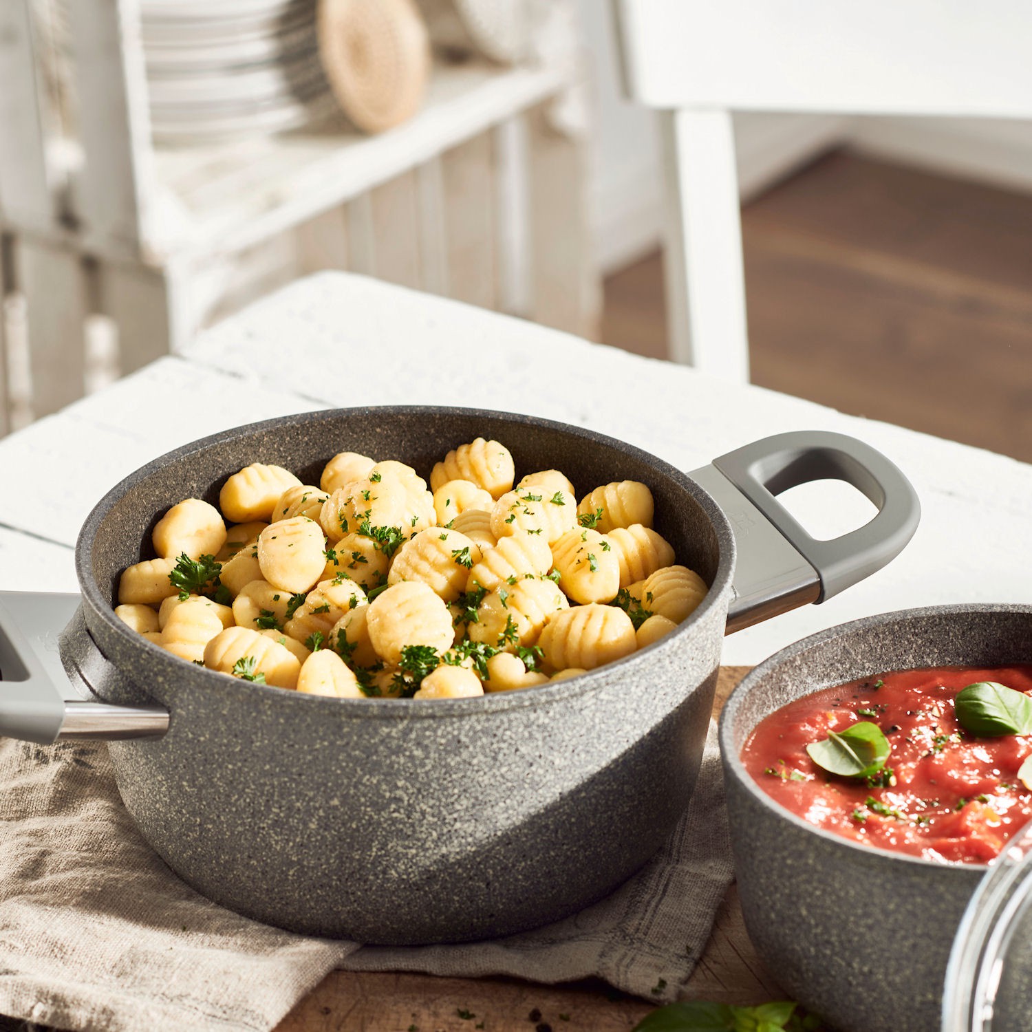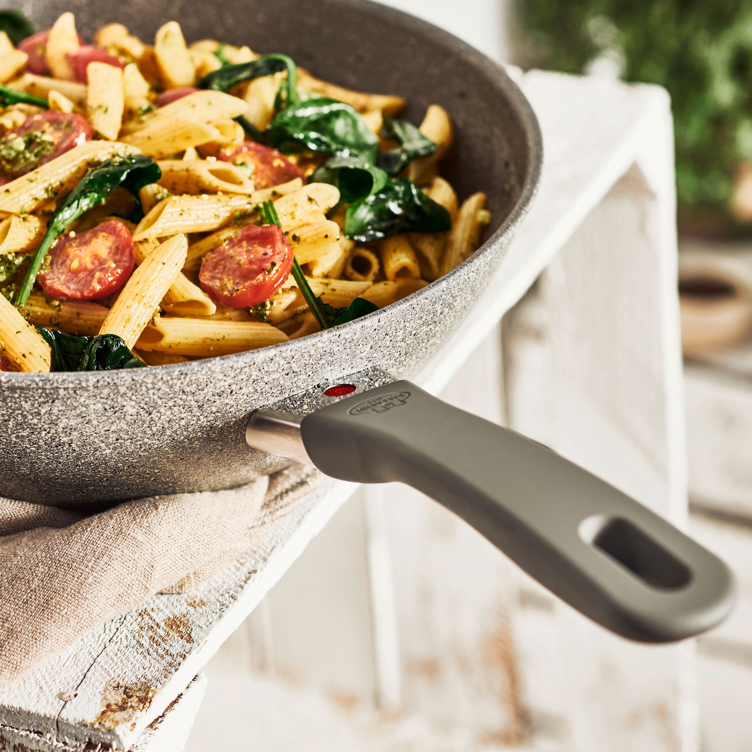 Specjalna, 5-warstwowa powłoka nieprzywierająca GRANITUM Extreme o grubości 4.5 mm zabezpiecza przed zarysowaniom czy przypaleniom. Zaleca się mycie ręczne, ale zmywarka również jej niestraszna.Patelnia wykonana została z kutego aluminium oraz wyposażona w technologię promienną, dzięki czemu równomiernie rozprowadza ciepło na całej powierzchni przyspieszając proces przygotowania potraw, szczególnie na płytach indukcyjnych. Dzięki wygodnym, przyjemnym w dotyku dwóm uchwytom naczynie może być bezpiecznie przeniesione bezpośrednio z kuchenki na stół.