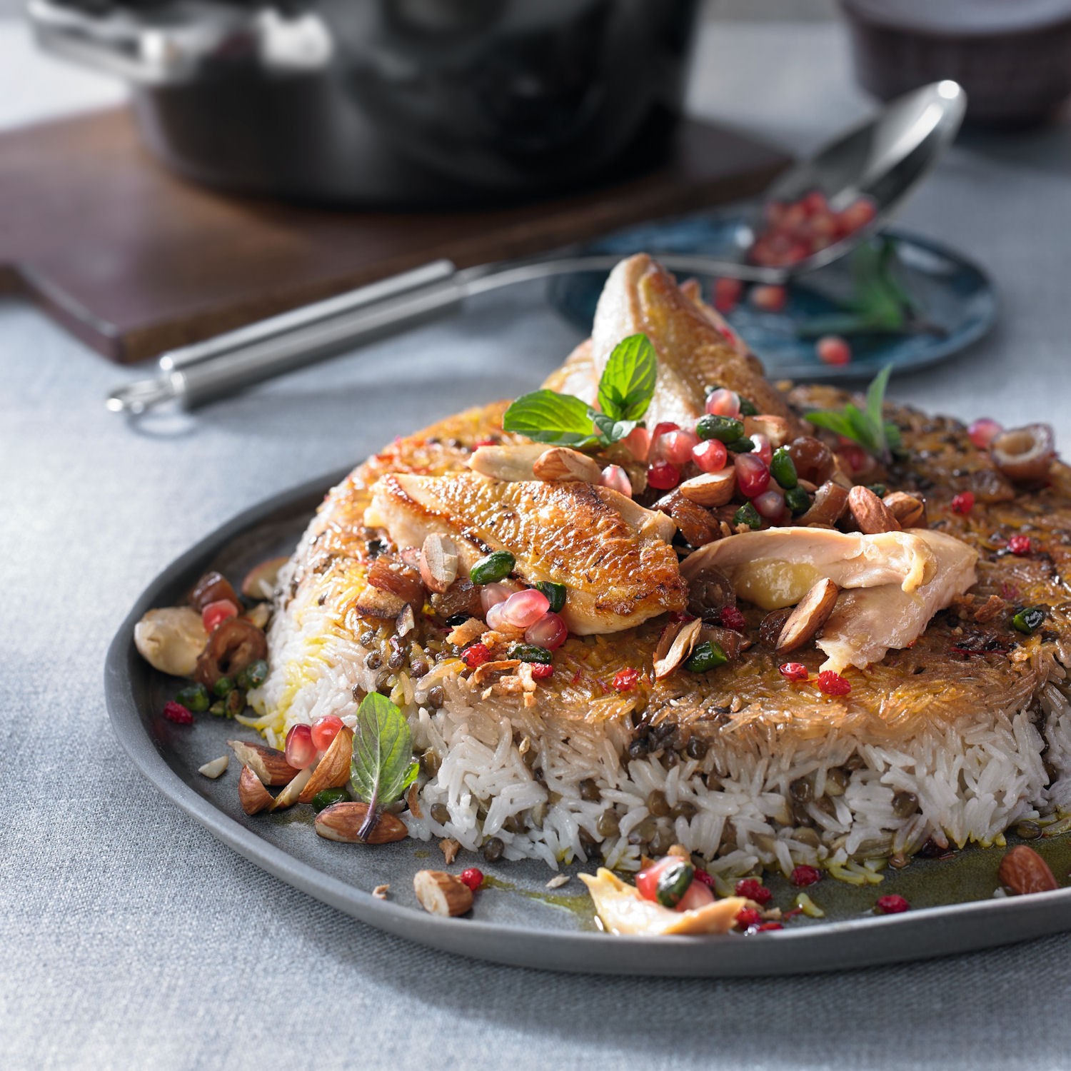 Naczynia posiadają innowacyjną pokrywę Aromatic. Dodatkowo pokrywę można użytkować w piekarniku nagrzanego aż do 250 st C. Pokrywa tworząca efekt deszczu gwarantuje równomierny obieg aromatów i smaków co daje pełną aromatyczność i idealną konsystencję potraw. Wykonana ze stali nierdzewnej Cromargan jest bardzo odporna na uszkodzenia.