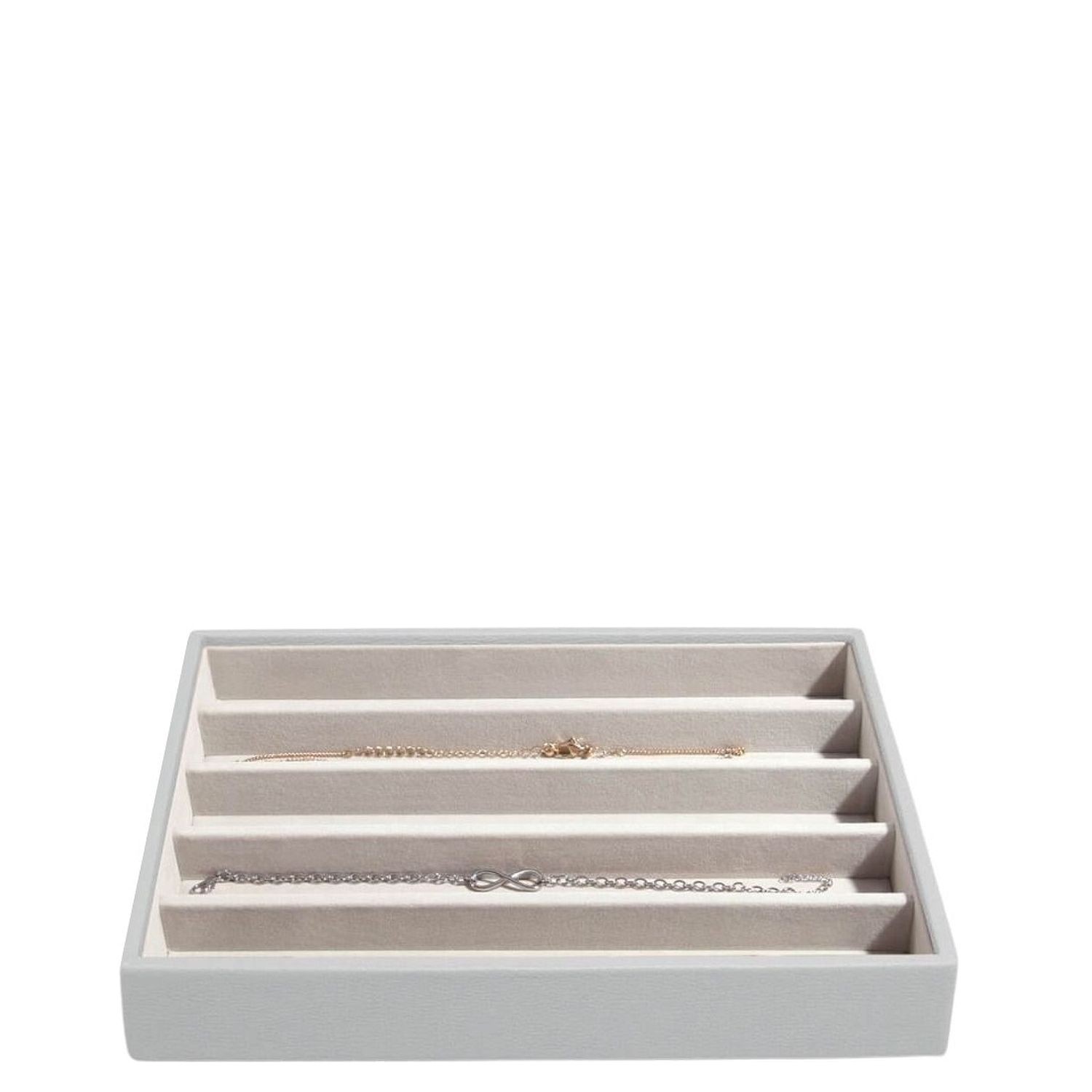 Pudełko z serii Classic zostało podzielone na 5 jednakowych przegródek tworząc idealne miejsce do przechowywania łańcuszków oraz bransoletek! Stackers to angielska firma, która produkuje wyjątkowe organizery na biżuterię. Pudełka wyróżniają się pięknym wyglądem, funkcjonalnością a także doskonałą jakością. Produkty marki Stackers zostały wykonane z dbałością o każdy detal, zdobyły serca kobiet na całym świecie!