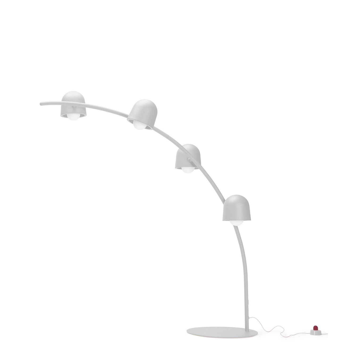 Dzięki Big Lebow możesz wnieść do środka tę spontaniczność na świeżym powietrzu. Nie ma znaczenia, gdzie postawisz tę łukową lampę podłogową – przy stole w jadalni, kanapie, nad stołem konferencyjnym, gdziekolwiek – Big Lebow pochyli się do przodu jak latarnia uliczna. Lampa posiada potężny łuk o wysokości 2,34 metra, podobnie jak jego ciężka stopa, wykonany jest ze stali malowanej proszkowo. Regulowane aluminiowe nakładki pozwalają samemu decydować, gdzie świeci światło. Lampa została wyposażona w ściemniacz.