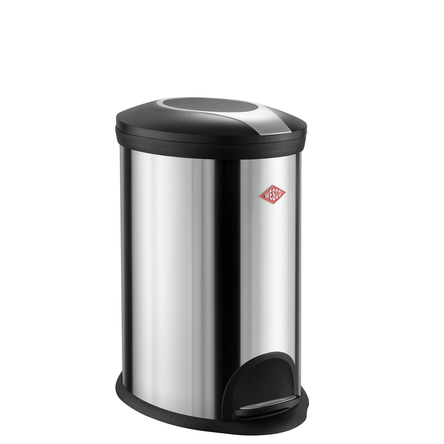 Kosz na śmieci z serii PedalBin marki WESCO Seria stalowych koszy w czterech pojemnościach: 5, 12, 20, 30 litrów. Owalny kształt, wkład wewnętrzny z tworzywa sztucznego. Praktyczny uchwyt z tyłu.