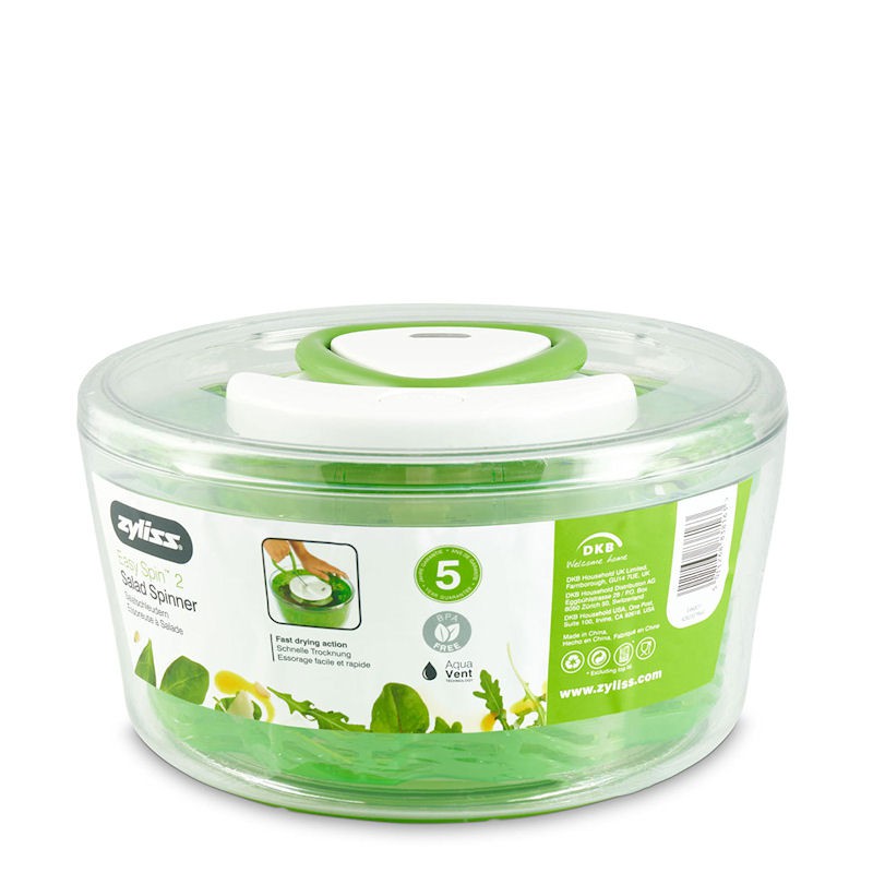 Specjalnie skonstruowany i opatentowany kształt kosza - Aqua Vent tworzy maksymalny przepływ powietrza i zwiększa wydajność osuszania o 25 % w porównaniu z innymi suszarkami do sałaty. W pokrywie znajduje się uchwyt mechanizmu sznurkowego, który wprawia w ruch kosz wewnątrz suszarki. Wystarczy parę razy pociągnąć, aby szybko osuszyć umyte liście. W ciągu minuty suszarka osiąga nawet 1800 obrotów.