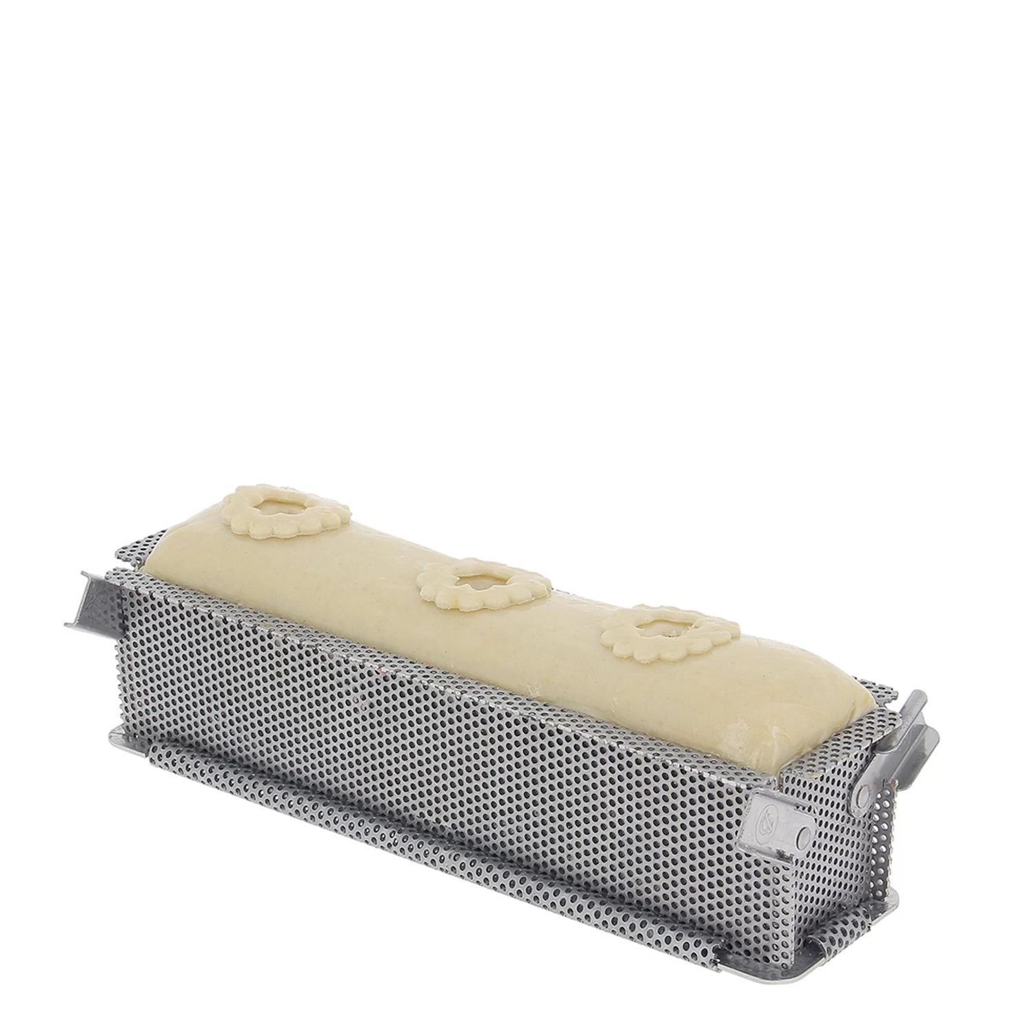 • Dzięki zawiasom możemy rozłożyć formę na „płasko” i idealnie dopasować jej wymiar do rozmiaru nadzienia.