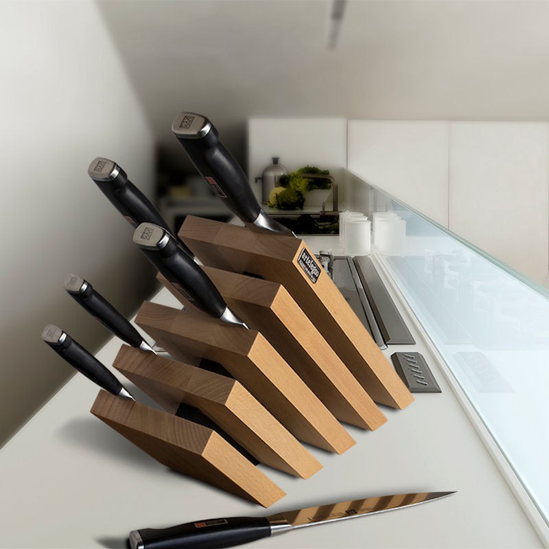 Stojak może pomieścić do 10 noży o maksymalnej długości ostrza 29.5 cm. Wykonany jest z litego drewna bukowego i pokryty specjalnym lakierem dopuszczonym do kontaktu z żywnością.