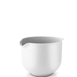 Miska posiada proste boki oraz szeroką podstawę ułatwiającą dostęp do wymieszanych składników. Pewny uchwyt utrzymuje miskę podczas pracy, a praktyczny dzióbek jest idealny podczas przenoszenia zawartości do mniejszej miski, lub naczynia.Miska jest również wyposażona w gumową krawędź u podstawy, która zapewnia stabilność na blacie. Miska jest odporna na temperaturę do 100°C iraz można uywać jej w zamrażalce i zmywarce