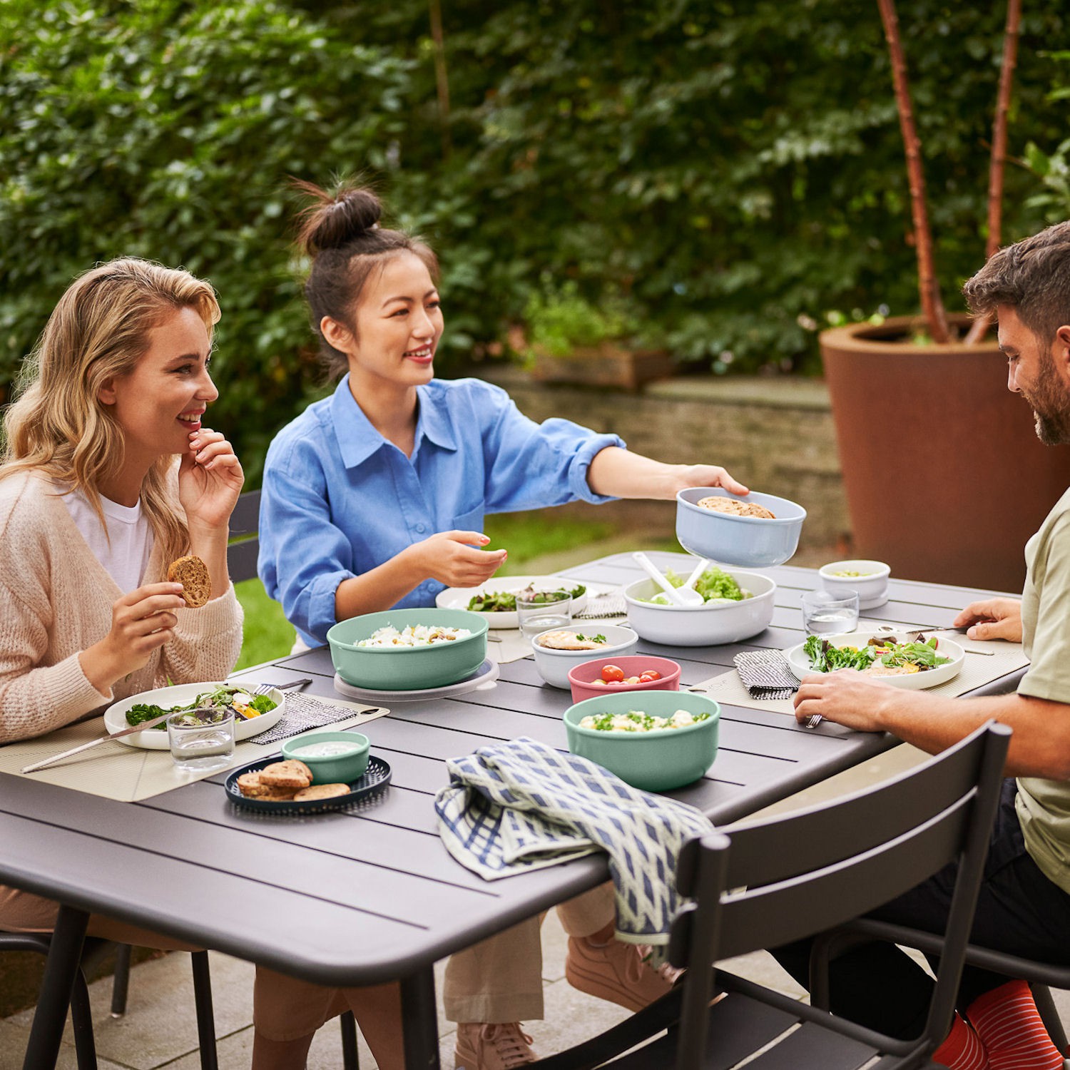 Zestaw 3 pojemników Lumina o pojemnościach; 250, 750 i 1500 ml. Pojemniki są szczelne, nie przepuszczają powietrza i zapachów, dzięki idealnie dopasowanej pokrywie. Pokrywa jest wykonana z transparentnego tworzywa, co umożliwia identyfikację zawartości, posiada również wypustkę, która wpływa na komfort użytkowania produktu - ułatwiając otwieranie i zamykanie.