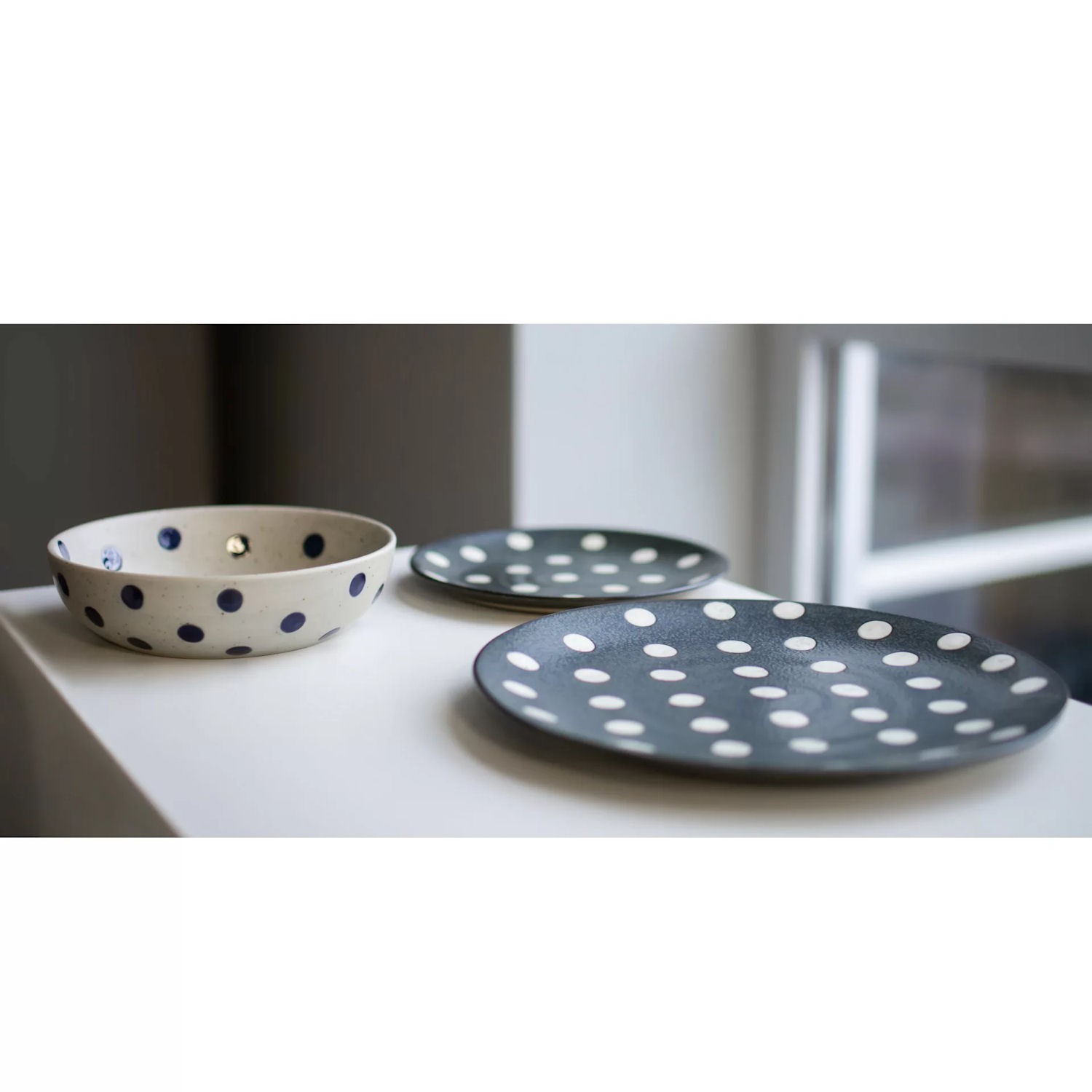 Kolekcja grochy to niebanalne połączenie elegancji i designu. W skład kolekcji wchodzą talerz głęboki oraz talerze płaskie, dostępne w dwóch różnych rozmiarach. Co wyróżnia tę kolekcję, to matowe wykończenie porcelany, które nadaje jej unikalnego charakteru. Charakterystyczne grochy pełnią rolę mocnego akcentu, nadając naczyniom niezwykłego uroku.