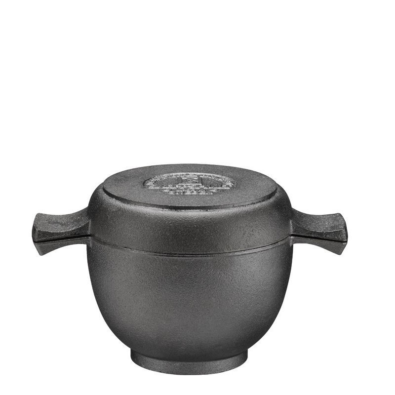 Mini żeliwny garnek: pojemność 0,5l, średnica u góry 12 cm, średnica spodu 7 cm, powierzchnia użytkowa 11 cm, wysokość: ok. 8 cm