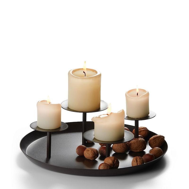 Stylowy świecznik wykonany ze stali z miejscem przeznaczonym na cztery świece. Nowoczesny wygląd sprawia, że dekoracja nadaje się idealnie do nowoczesnych wnętrz jednak w każdym pomieszczeniu nada nostalgiczny klimat.