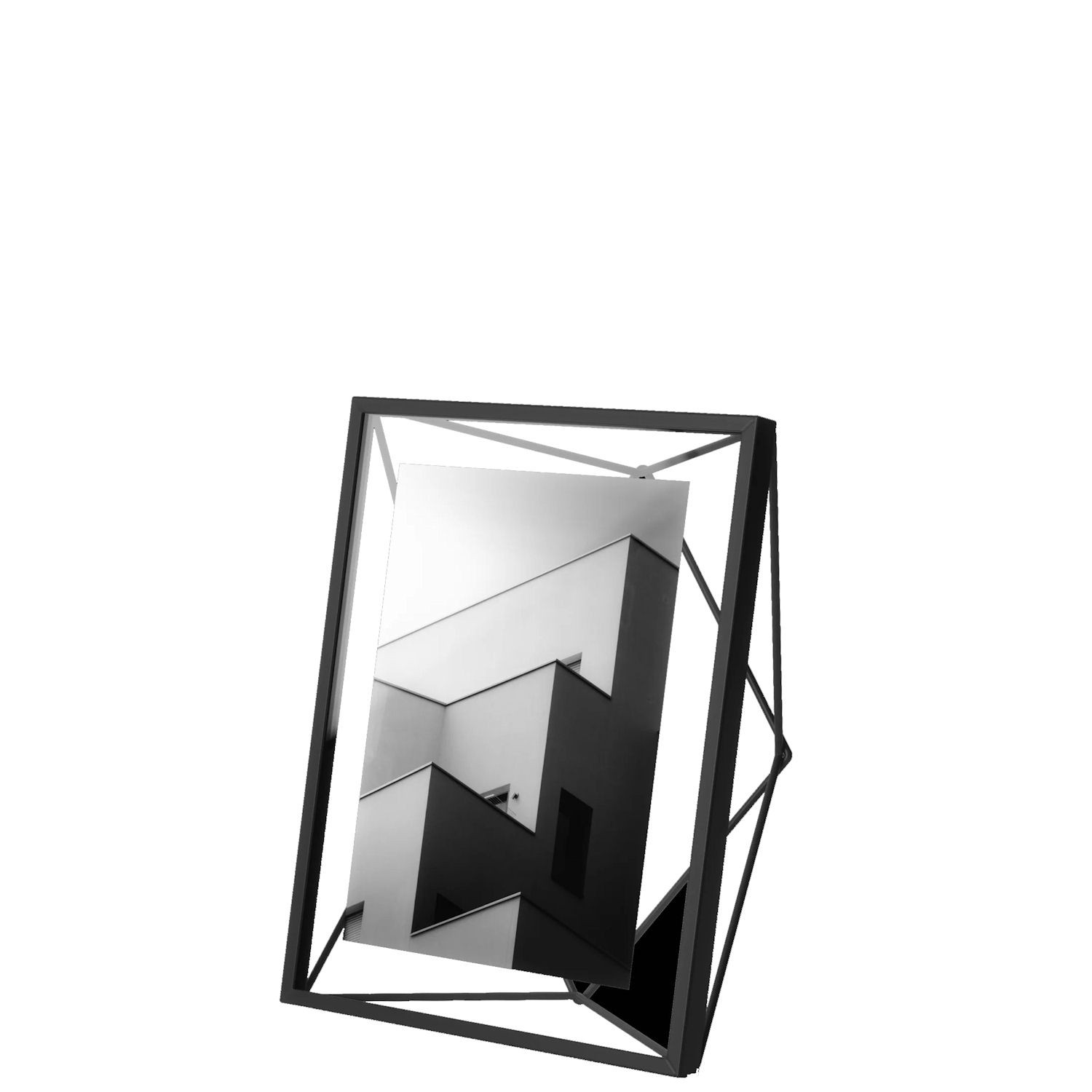 Ramka na zdjęcia Prisma marki Umbra. Prisma to wyjątkowa ramka, dla której inspiracją stał się załamujący światło pryzmat. Stąd też produkt charakteryzuje się subtelnymi załamaniami formy, przypominającymi zakrzywione promienie światło. To w ich środku znajduje się miejsce na ulubioną fotografię. Umieszczona w centrum konstrukcji ramki, jest ona znakomicie wyeksponowana i z pewnością przywoła uśmiech i przypomni najmilsze chwile.
