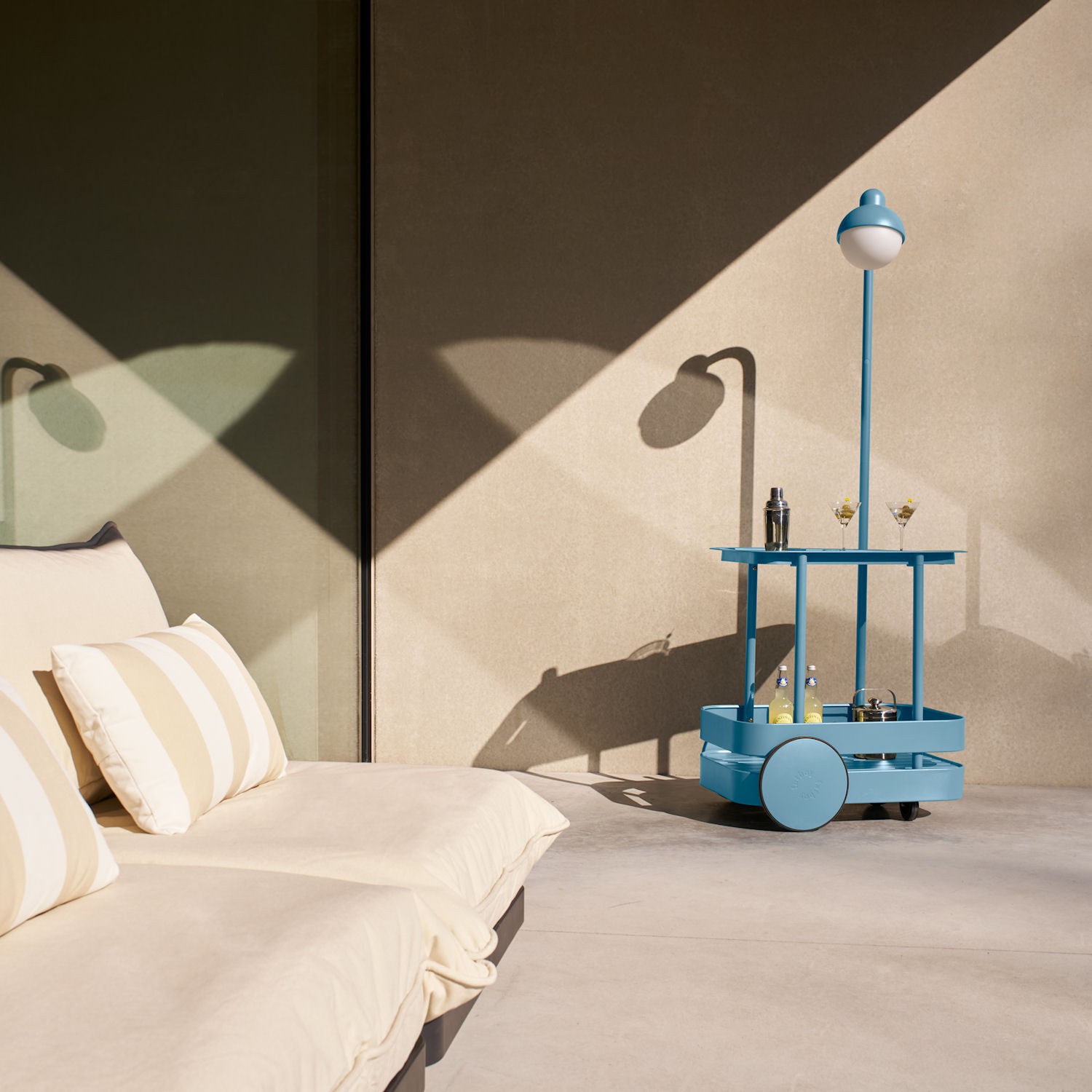 Wózek z lampą ogrodową Jolly marki Fatboy.