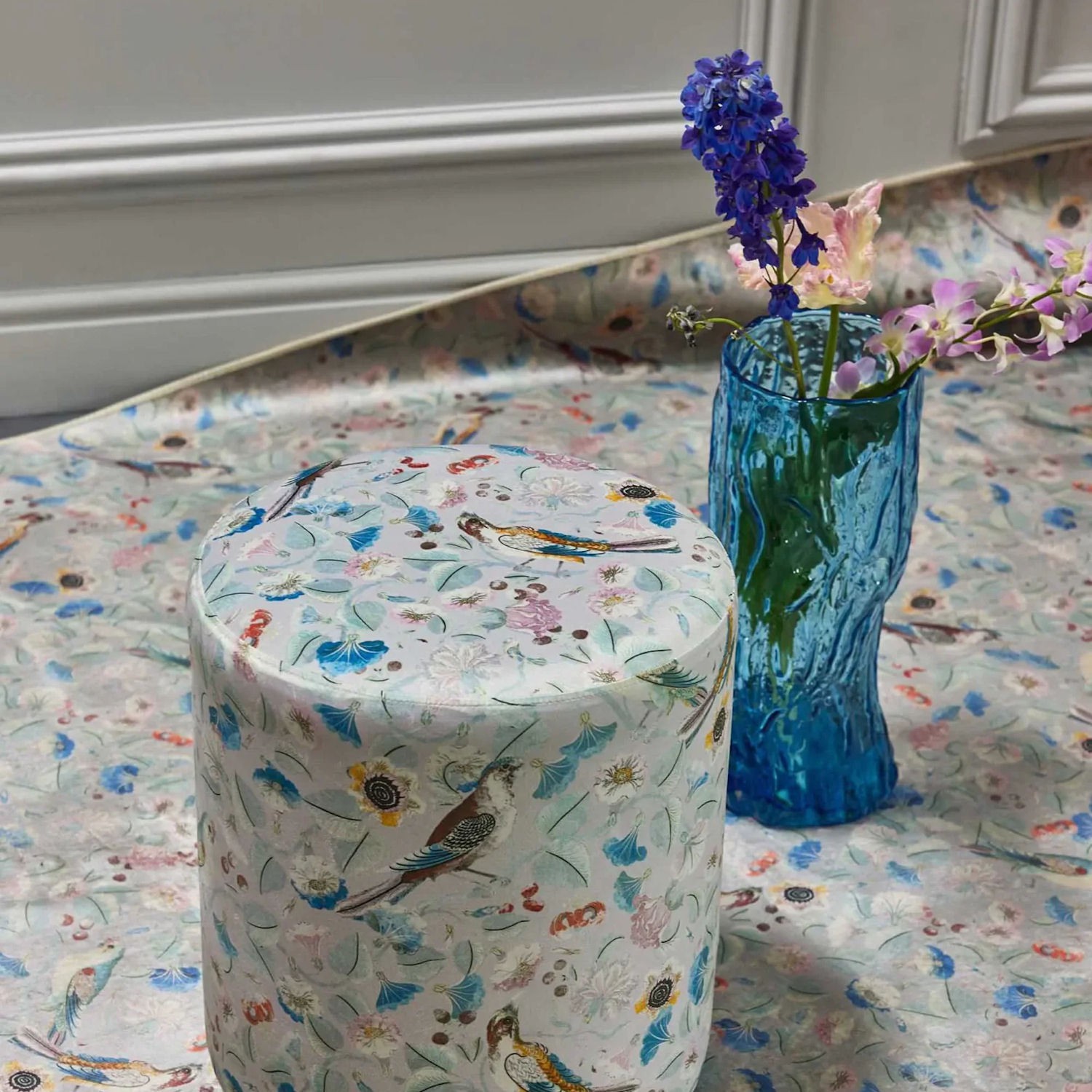 Wzór na dywanie Aleste jest prawdziwą ucztą dla oka. Przedstawia elegancką i żywą kompozycję flory oraz fauny