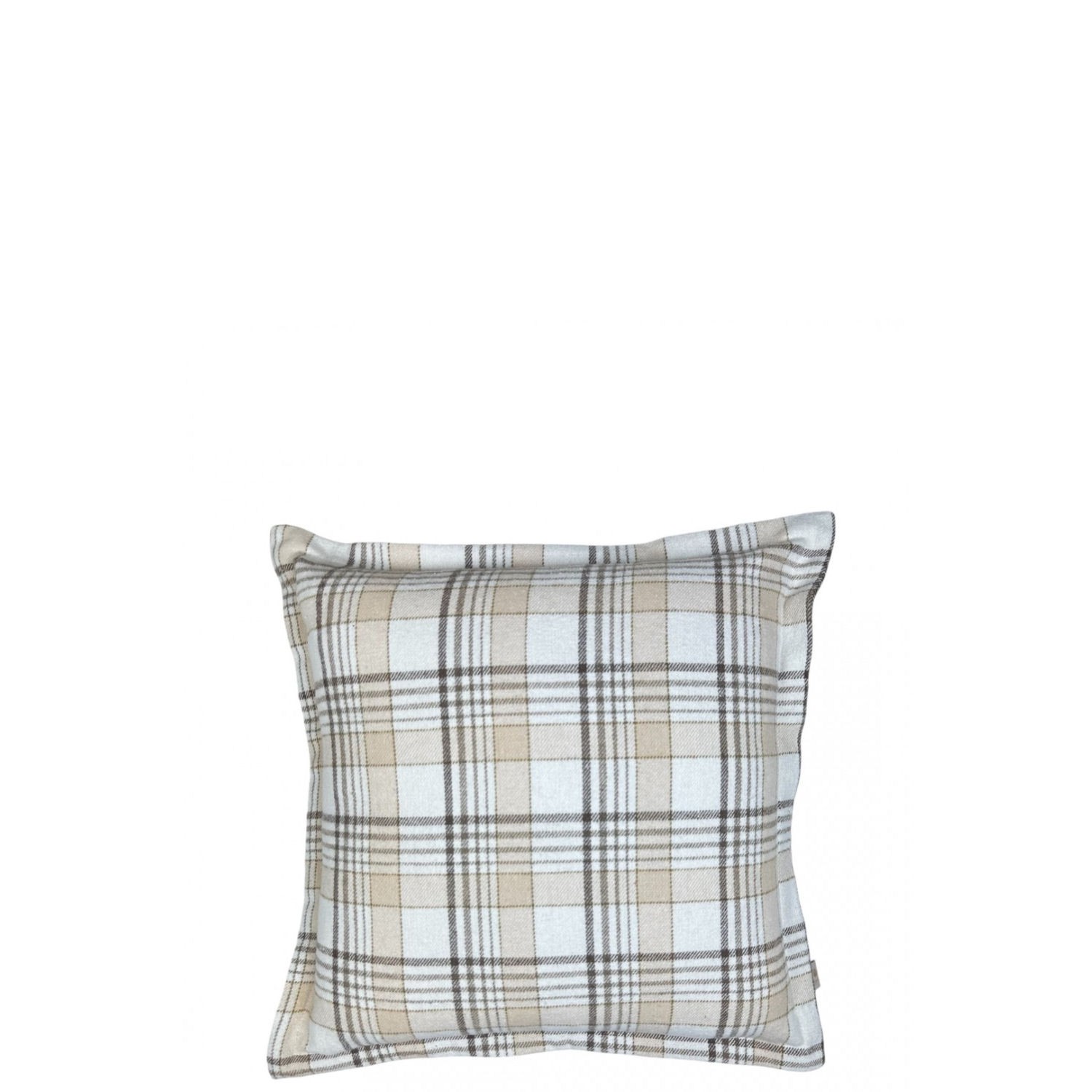 Poduszka dekoracyjna w kratę w odcieniach beżu i brązu z modnym przeszyciem powiększającym.