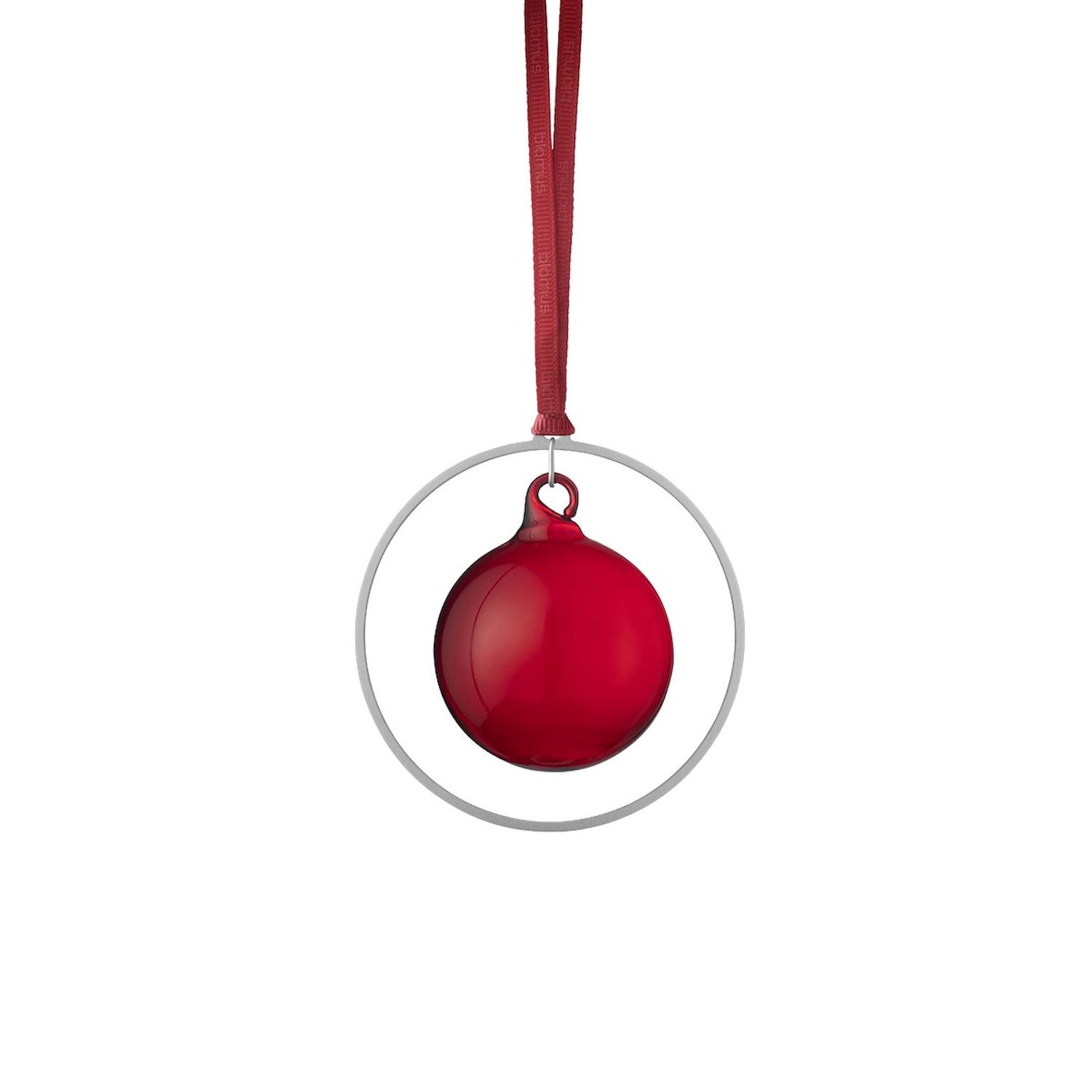 Bombki wykonano z ręcznie dmuchanego szkła i oprawione w metaliczne pierścienie.