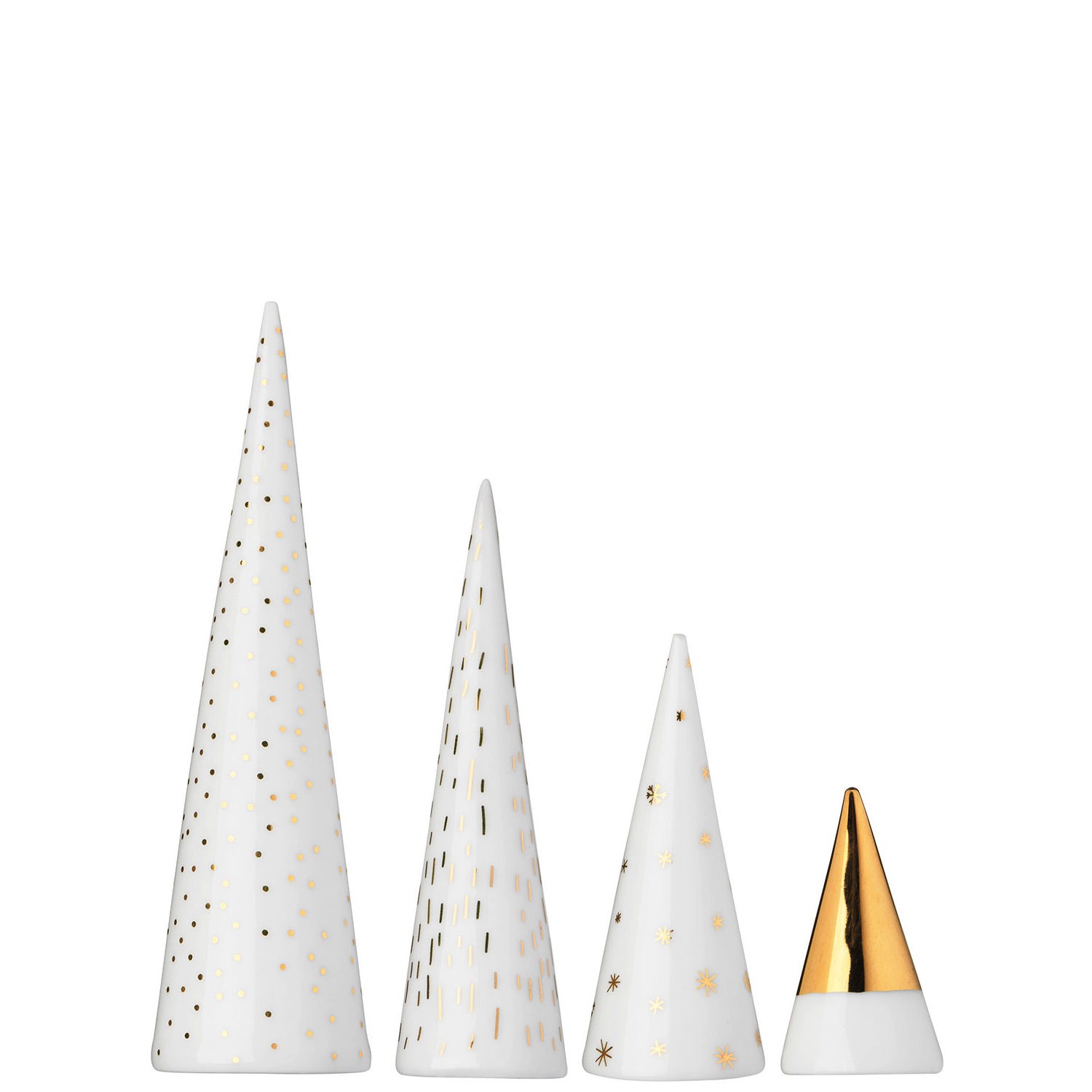 Wykonane z wysokiej jakości porcelany, która gwarantuje trwałość i elegancję. Zestaw zawiera cztery choinki, idealne do stworzenia świątecznego nastroju na stole lub komodzie.