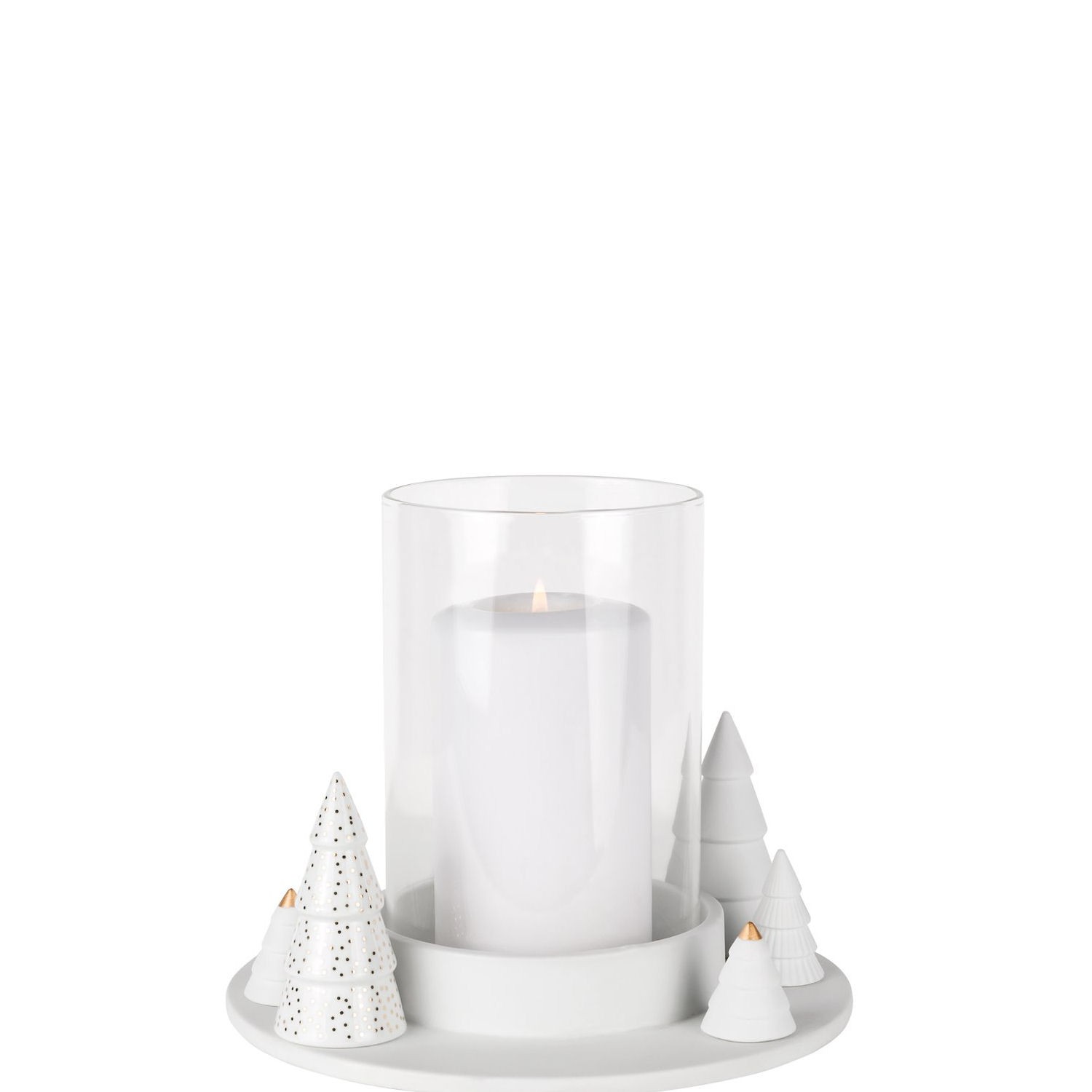 Składa się z okrągłej, podstawy wykonanej z delikatnej porcelany, na której centralnie umieszczono, szklany klosz przeznaczony na świecę typu pieńkowego. Klosz chroni płomień i pięknie rozprasza światło, tworząc w pomieszczeniu ciepłą, przytulną atmosferę.