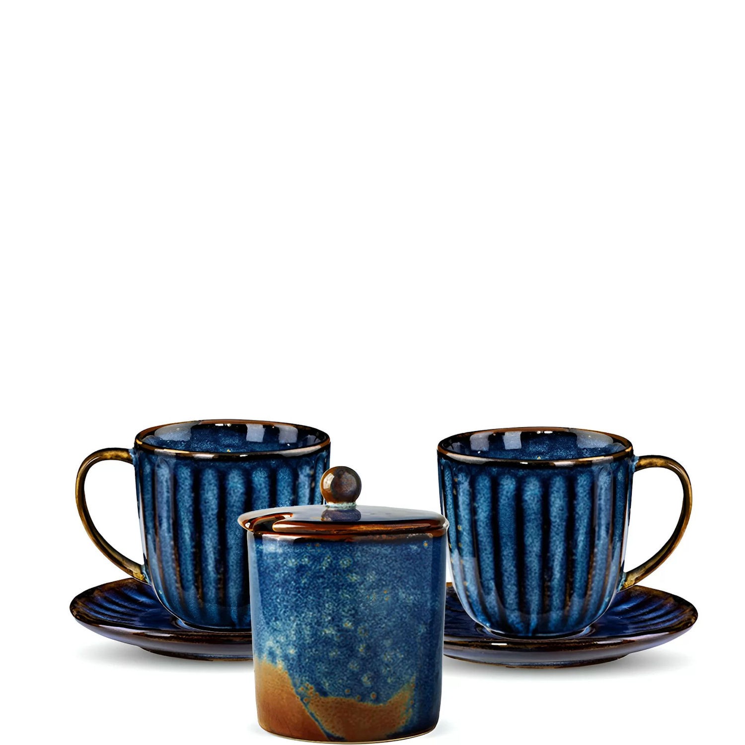 Zestaw do herbaty Verlo Deep Blue to komplet przygotowany dladwóch osób sprawdzi się zarówno podczas codziennych posiłków, jak i przy specjalnych okazjach .Dwa kubki ze spodkami oraz cukiernica z pokrywą sprawdzą się podczas wspólnej herbaty każdego dnia.