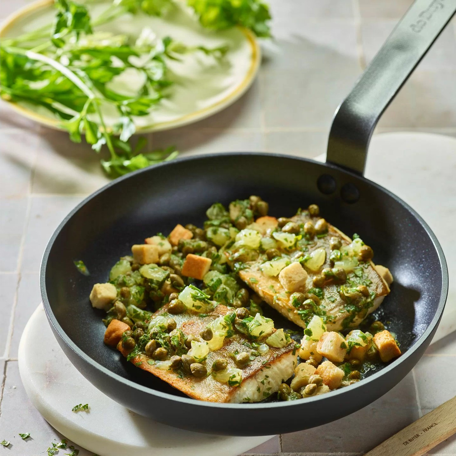 Patelnia z serii naczyń CERANOA od marki DeBuyer.