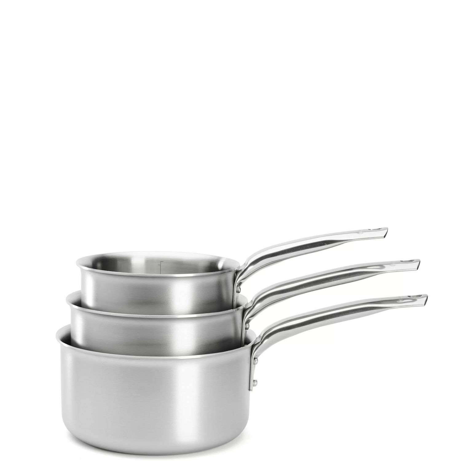 Zestaw zawiera zawiera trzy rondle o pojemnościach 1,5 l, 2 l, 2,5 l