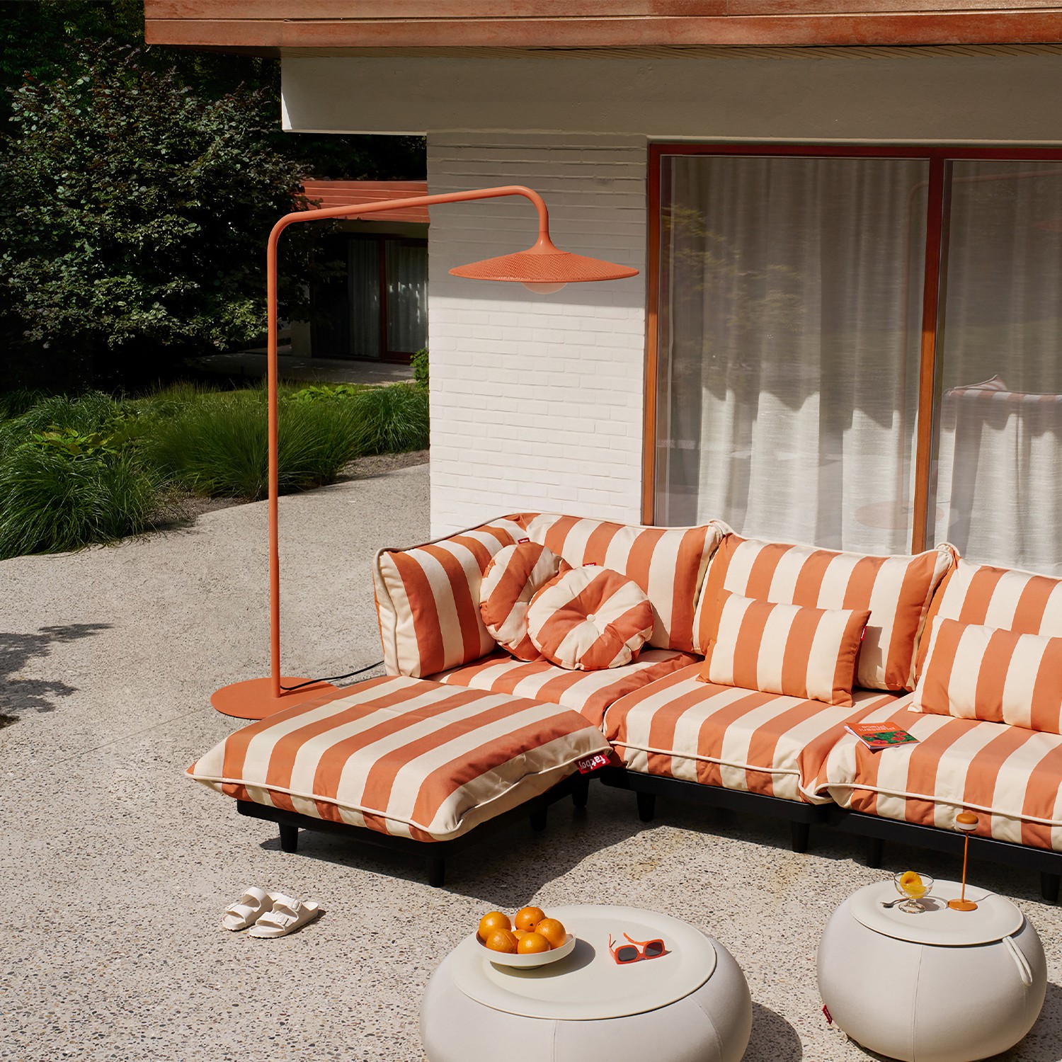 Archigrande to imponująca, obszerna lampa zewnętrzna, która nadaje charakter każdej przestrzeni na świeżym powietrzu. Ma zabawny kształt, dopracowane detale i została zaprojektowana tak, aby zachęcić do cieszenia się życiem na zewnątrz. Ma 2,33 metra wysokości, a jej szeroki klosz stanowi wyrazisty akcent nad tarasem lub strefą wypoczynkową. Aluminiowy łuk i solidna stalowa podstawa zapewniają stabilność lampy i chronią ją przed rdzą przez wiele sezonów. Perforowany aluminiowy klosz umożliwia swobodny przepływ powietrza i światła, tworząc charakterystyczny miękki krąg światła.
