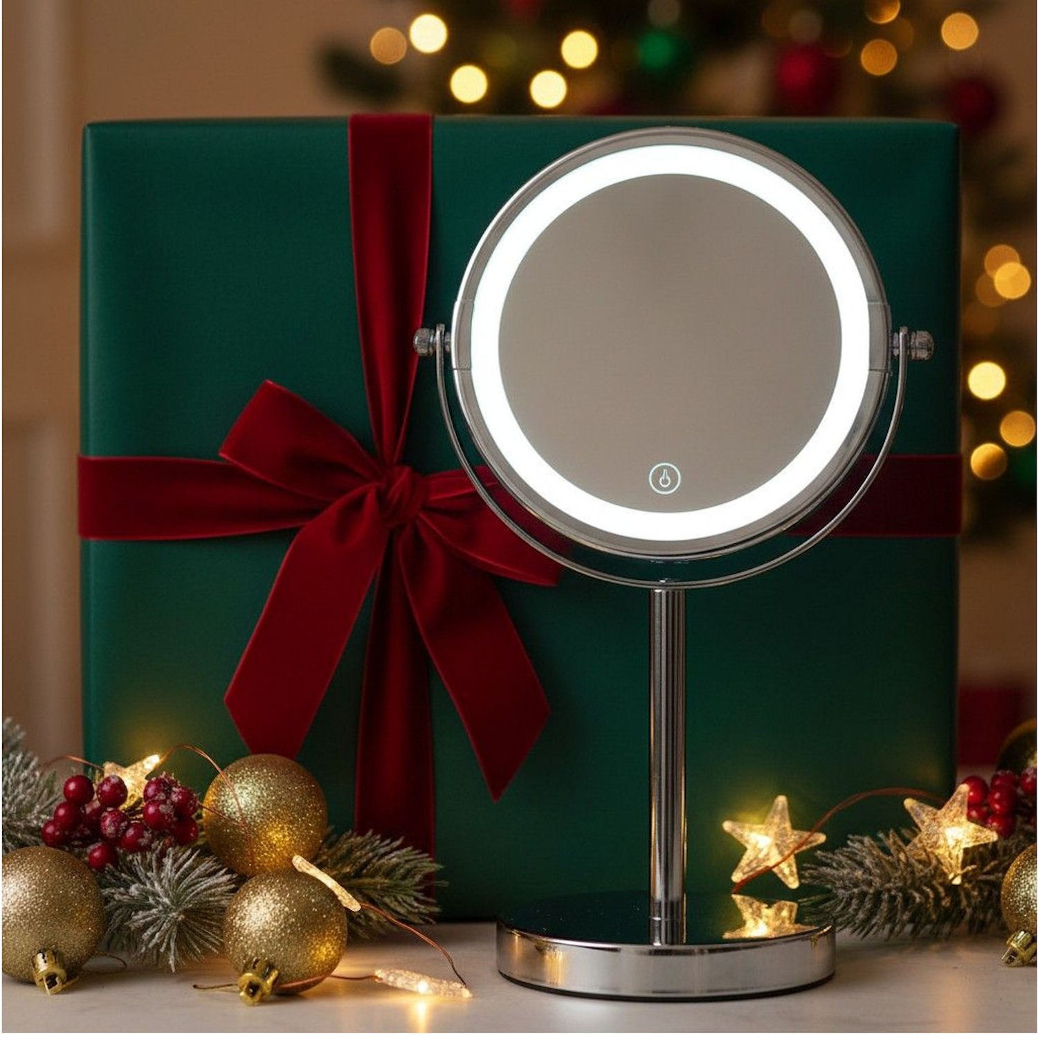 Wbudowane oświetlenie LED – równomierny pierścień świetlny wokół tafli zapewnia naturalne i dokładne doświetlenie twarzy.