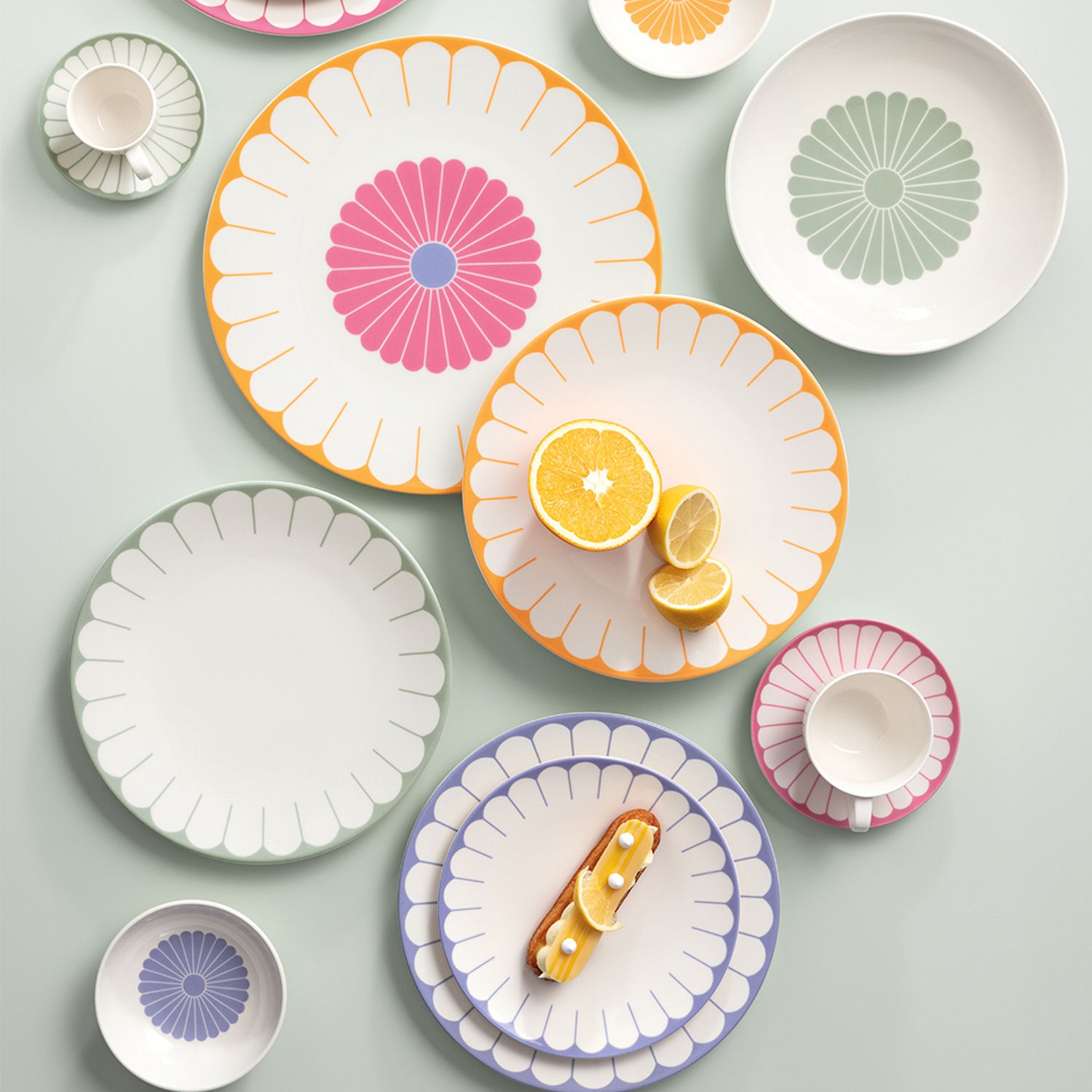 To, co wyróżnia Fleur, to sposób operowania kolorem. Kolekcja bazuje na kilku ciepłych tonacjach, które można ze sobą swobodnie łączyć, tworząc własne zestawienia – trochę jak układanie bukietu z różnych kwiatów. Jedne elementy są utrzymane ton w ton, inne bardziej kontrastowe, ale całość pozostaje spójna wizualnie. Dzięki temu zastawa nie jest „sztywna” ani jednorodna – raczej zachęca do zabawy kompozycją i indywidualnego podejścia do nakrycia stołu.